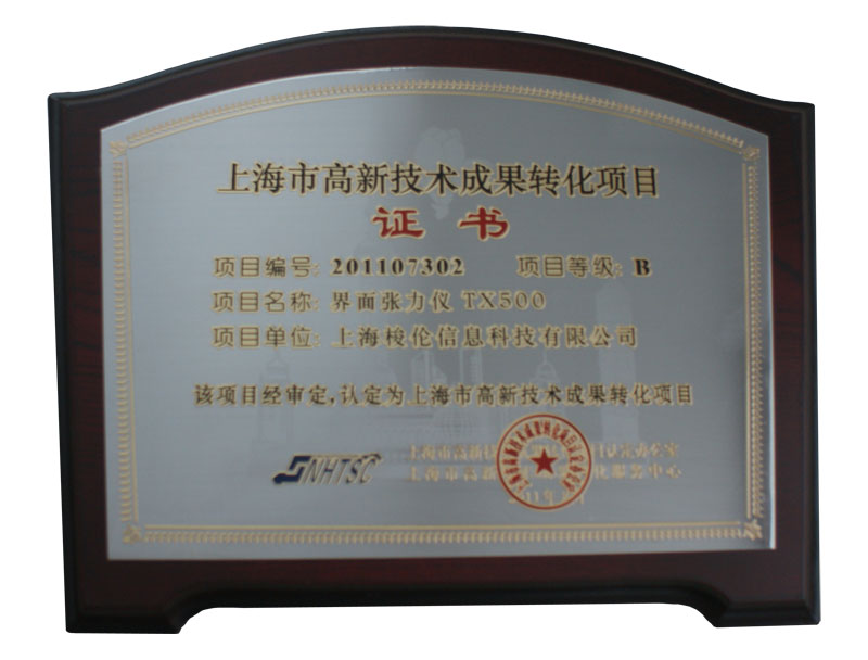 美國(guó)科諾中國(guó)合作伙伴上海梭倫TX500系列界面張力儀獲得上海市高新技術(shù)轉(zhuǎn)化項(xiàng)目認(rèn)證,這一方面再次印證了我們的技術(shù)是領(lǐng)先的,是得到國(guó)家正式承認(rèn)的,同時(shí),對(duì)于國(guó)內(nèi)如競(jìng)爭(zhēng)對(duì)手的惡意中傷更是一個(gè)強(qiáng)大的還擊。美國(guó)科諾將在TX500系列界面張力儀方面開發(fā)出更多如Young-lapalace擬合、ADSA技術(shù)、振蕩流變、特殊界面張力測(cè)試等復(fù)雜技術(shù)以適應(yīng)廣大用戶的需求,從而進(jìn)一步證明我們的實(shí)力。