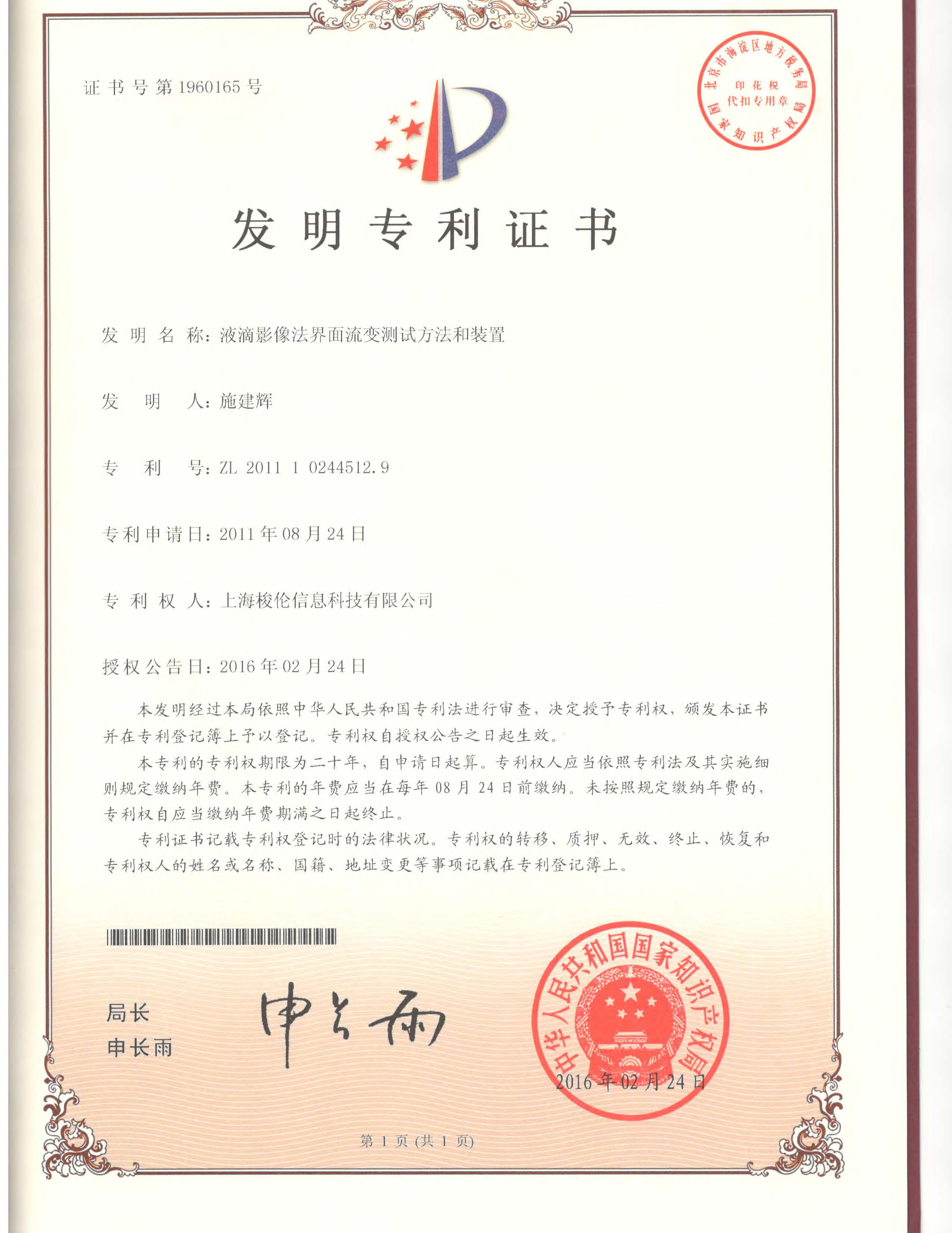 1,發(fā)明專利:液滴影像法界面流變測(cè)試方法和裝置,核心技術(shù):基于真實(shí)液滴法的Young-Laplace方程擬合技術(shù);